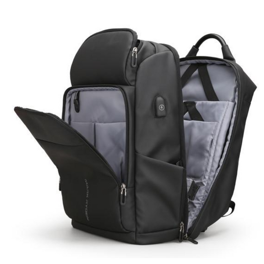 Раниците разполагат с вградени USB портове за лесно зареждане на мобилни устройства, RFID защита на джобовете, водоустойчиви материи, скрити ципове и отделения против кражба. Вътрешността е интелигентно организирана, така че да побира лаптопи до 17 инча, таблети, зарядни устройства, документи и всичко необходимо за деня ви – без излишен обем.