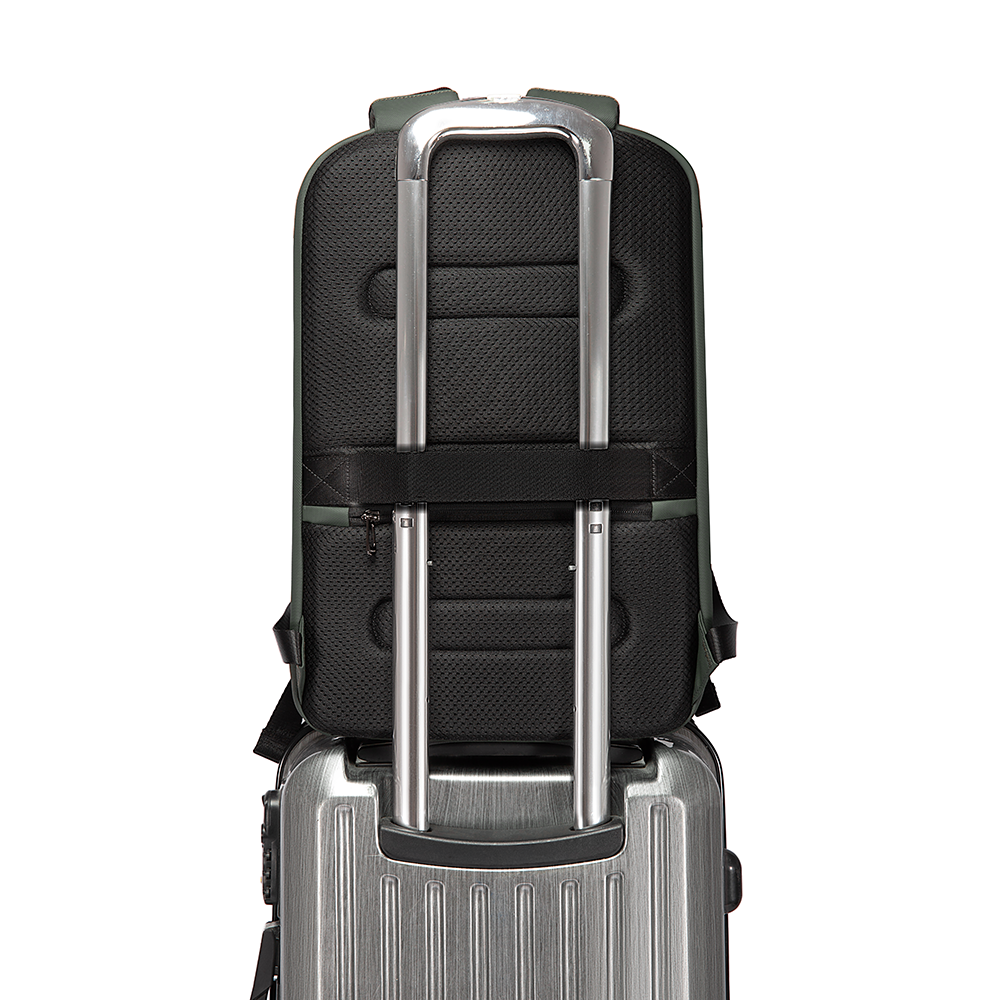 Готов за пътуване. Прикрепете раницата към дръжката на всеки куфар с вградената каишка за багаж и обикалянето на летището става лесно. Максимален комфорт. Създадени с мисъл за вашето благополучие, те разполагат с удобни презрамки, които се регулират, за да паснат на всяка фигура.