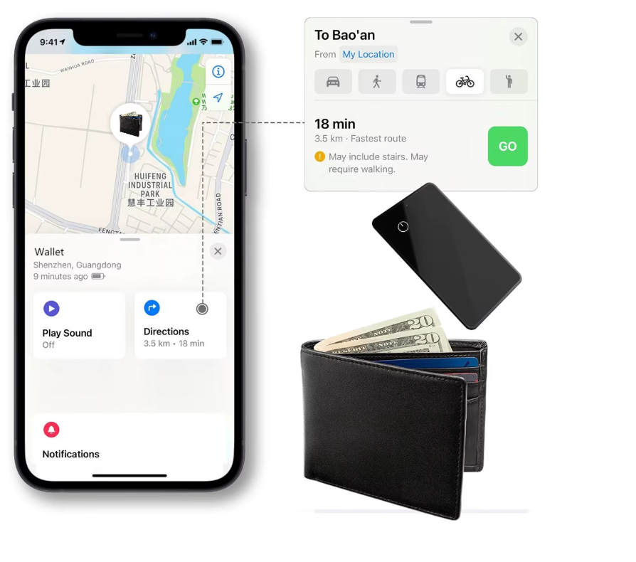Независимо къде попадне портфейла ти, дори във вода картата ще продължи да работи, за да може да го откриеш.