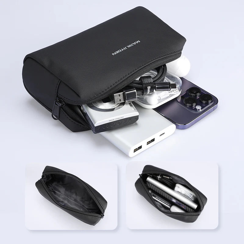 • Лесна организация: Предлага удобни отделения за съхранение на аксесоари като ключове, кабели, зарядни устройства, слушалки и други необходими вещи.