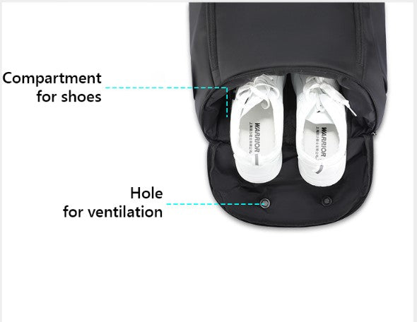 Тъй като това в крайна сметка е раница за спорт и туризъм е предвидено в нея специален джоб, в който да поставите обувките си отделно от дрехите и другите вещи