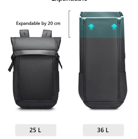 Друга чудесна функционалност е възможността за разширяване, когато имаш нужда от допълнително пространство за пътуване или екскурзия. Раницата е проектирана така, че може да се разтяга и да стане голяма, колкото малък куфар, а иначе казано до 38 литра побираемост. Достатъчно място, което да побере дрехите за 2-5 дни пътуване, а също така ще има достатъчно място за целия ти комплект козметични принадлежности.