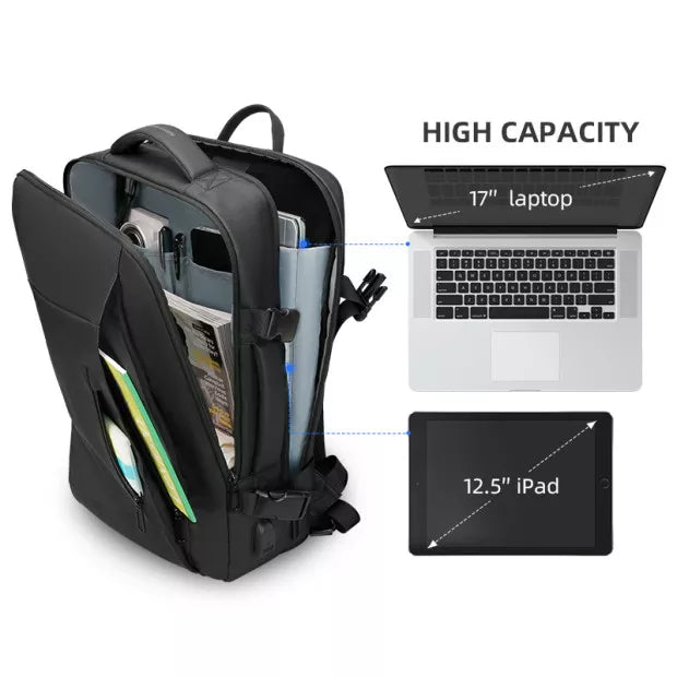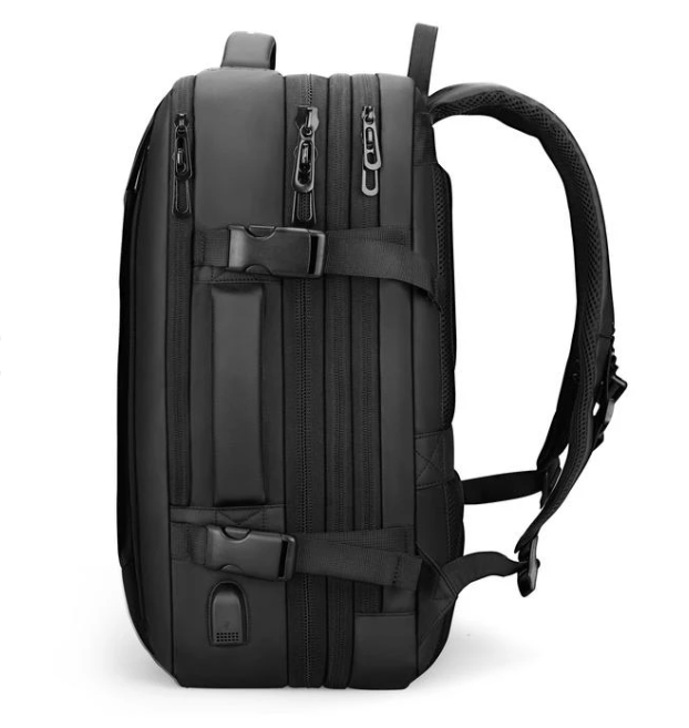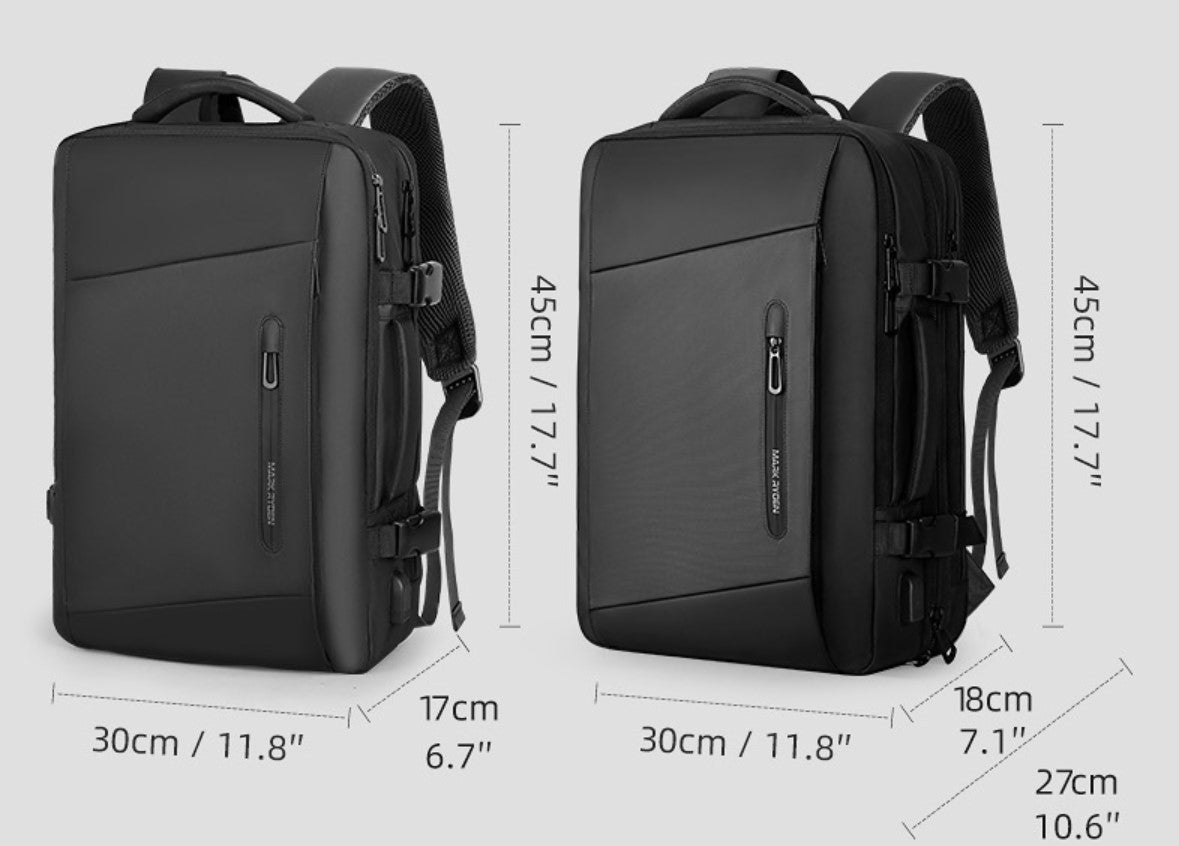 SMART раницата "Mark Ryden Expandos" е стилна раница, която е подходяща, както за ежедневно носене така и за пътуване. Тази раница има няколко уникални възможности, които съвсем променят представите ви за понятието раница и възможностите за използване на такава. Раницата е проектирана така, че може да се разтяга и да стане голяма, колкото малък куфар, а иначе казано до 38 литра побираемост.В първото подразделение на раницата, има възможност да побере лаптоп до 17'' инча, както има и джоб за таблет, телефон и книга. Втората част на раницата - големият джоб е предназначен за побиране на всякакъв багаж от ежедневието или за пътуване, когато раницата се разтегне до максималния и размер. Последния джоб най-отпред е предназначен за лични вещи, които пренасяте - телефон, ключове, портфейл и т.н.Дръжките са много удобни и дължината им може да се нагласява според нуждите ви, така че да ви е удобно. Гърбът на раницата е много удобен и мек, като е създаден от дишащи материали, за да предотврати изпотяване на гърба. Включена е функция за USB зареждане на телефона.(Батерия не е включена в комплекта)Защо да изберете точно тази раница?Много мястои лесна организацияТази раница има място и подразделения за всичките ви вещи, така че можете да се подготвите за 7 дневно пътуване. Лесна за организиране и разтягащ се дизайн.ДъждобранРаницата съдържа вграден дъждобран, което я прави перфектна при изненадващи климатични условия,тъй като вие и вашите вещи ще останат сухи.ВодоустойчивостТази СМАРТ раница е водоустойчива, така че можете да бъдете сигурни за вещите си в нея като лаптоп, дрехи и други, че са на сигурно място.USB зарежданеUSB зареждане за твоя телефон. Просто включете power bank отвътре и телефона си отвън и бъдете онлайн през цялото време.Място за 17.3 инча лаптопВ раницата ще откриете специален джоб за 17.3 инчов лаптоп, който ще бъде на сигурно място във всяка ситуация.Анти-стрес материалиТази раница е направена от анти-стрес материали, които не позволяват на алергии и прах да се събират в дръжките и гърба й. Забравете за потенето заради дишащите нишки.Перфектна за пътуванеТази раница е идеална за вашето пътуване, защото изпълнява всички изисквания на летищните власти за ръчен багаж.
