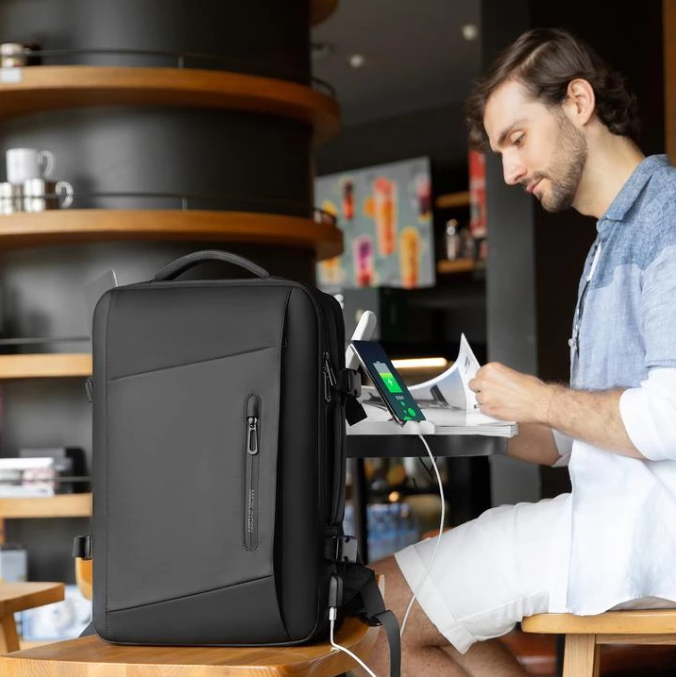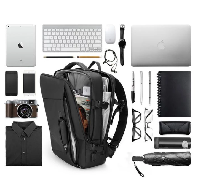 Expandos разполага с място и отделения за всичките ви вещи. Можете да поберете лаптоп, телефон, таблет, слушалки, безжичната клавиатура и мишка. Удобно ще можете да зареждате и използвате телефона си, докато сте в движение, благодарение на функцията за зареждане с USB!