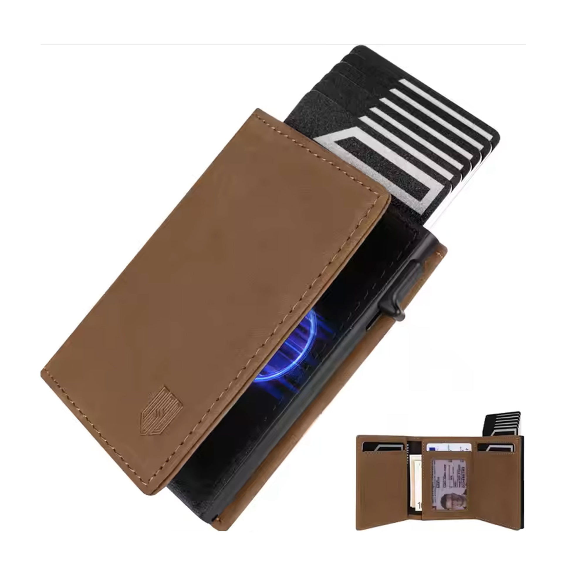 • Допълнителни отделения за 5 карти вътре в портфейла – перфектно организирани и лесно достъпни.