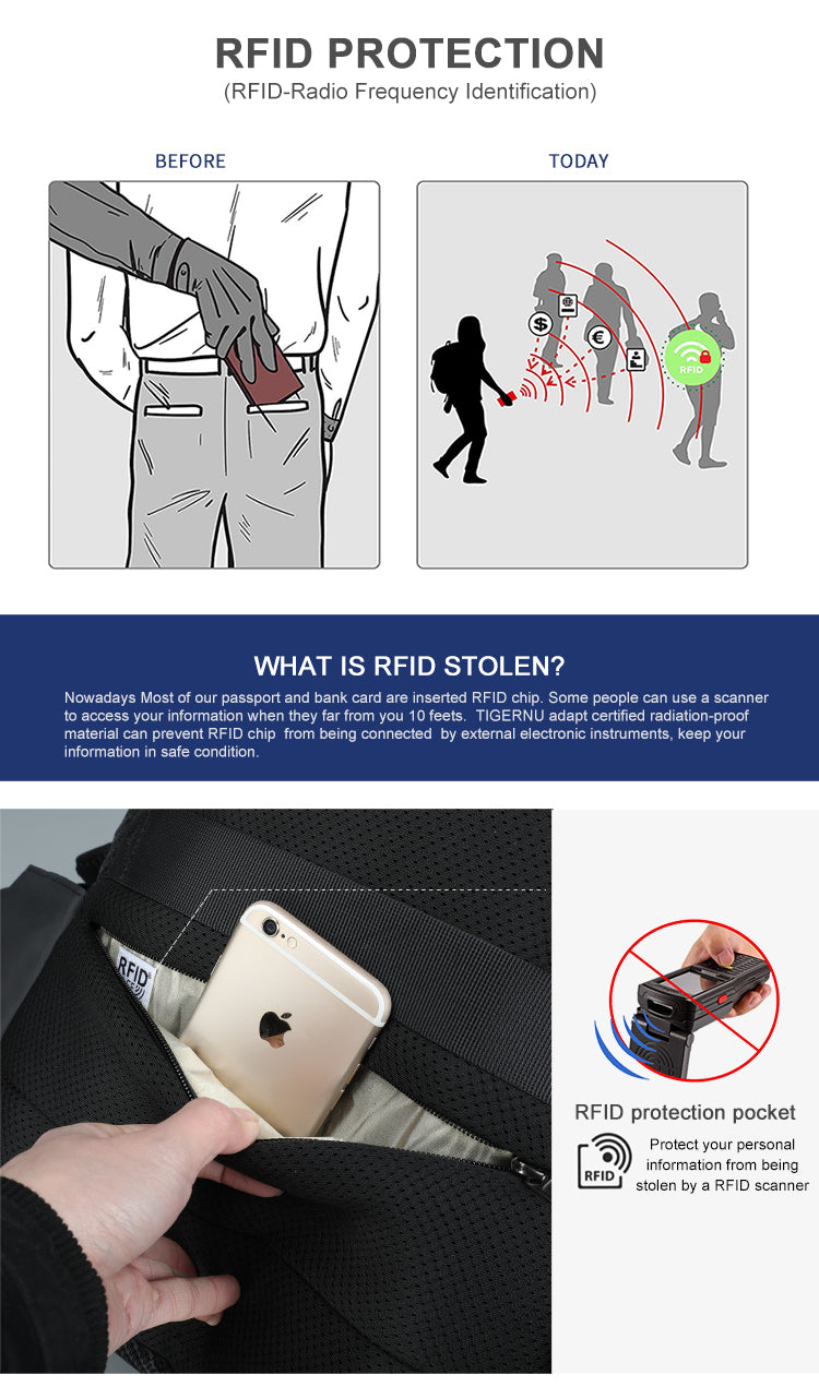 Вградено заключване на ципа. Пазете вещите си на сигурно място, където и да сте. Отделно интегирана RFID защита на раницата.